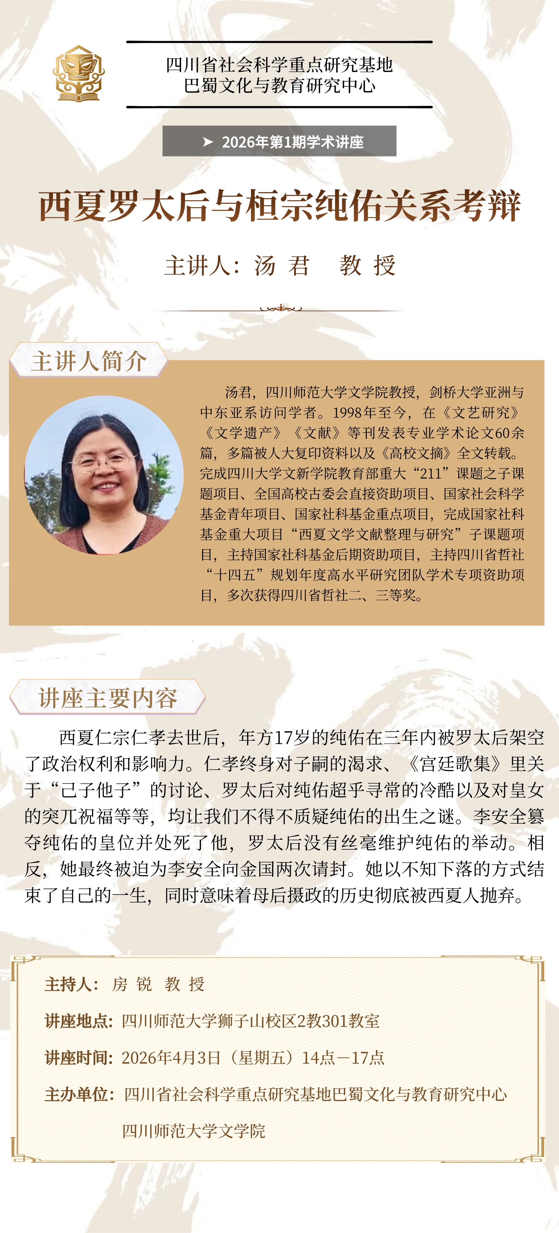 >>讲座预告 | 汤君:西夏罗太后与桓宗纯佑关系考辩