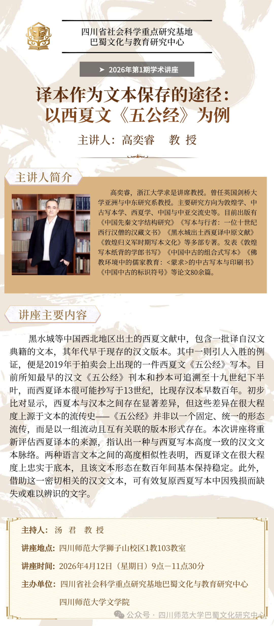 讲座预告 | 高奕睿:译本作为文本保存的途径:以西夏文《五公经》为例