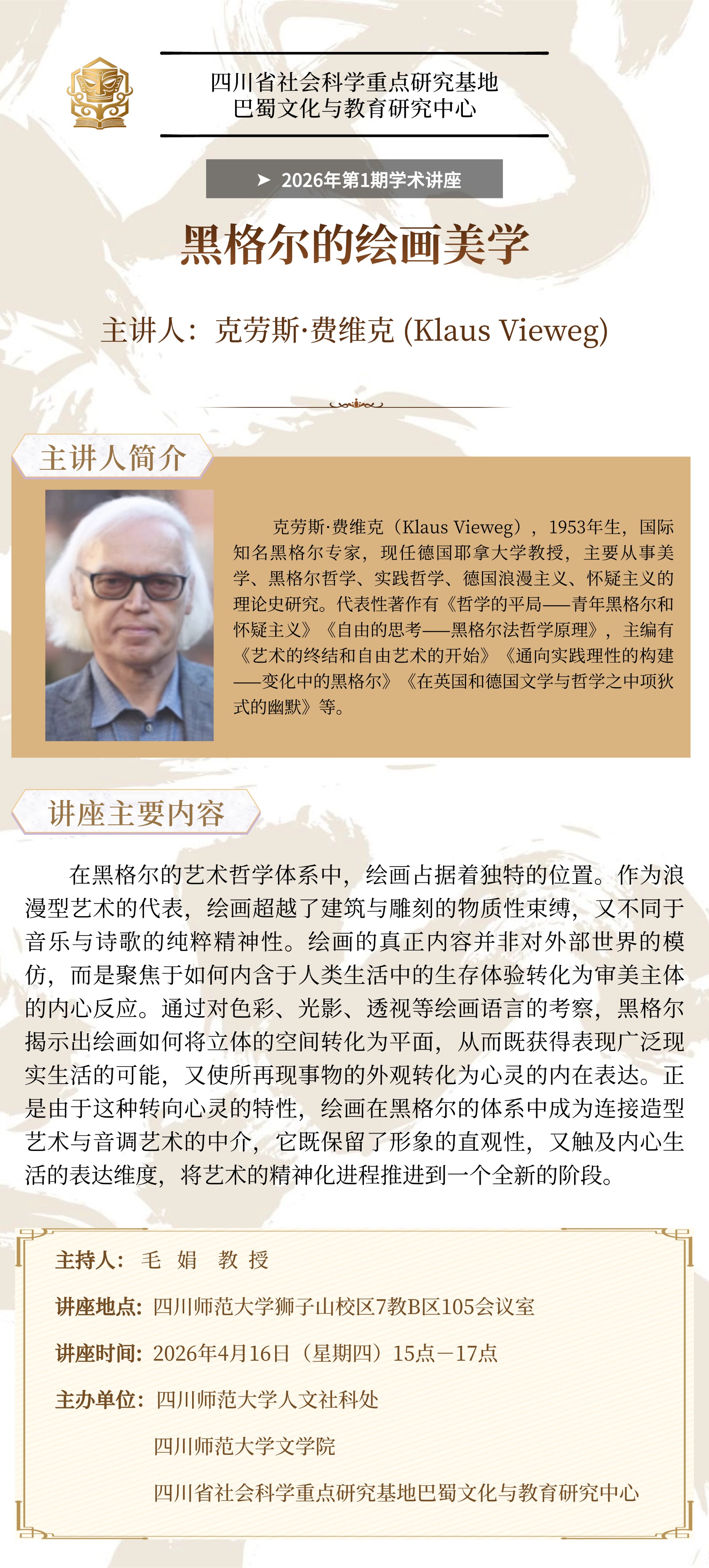 >>讲座预告 | 克劳斯·费维克:黑格尔的绘画美学